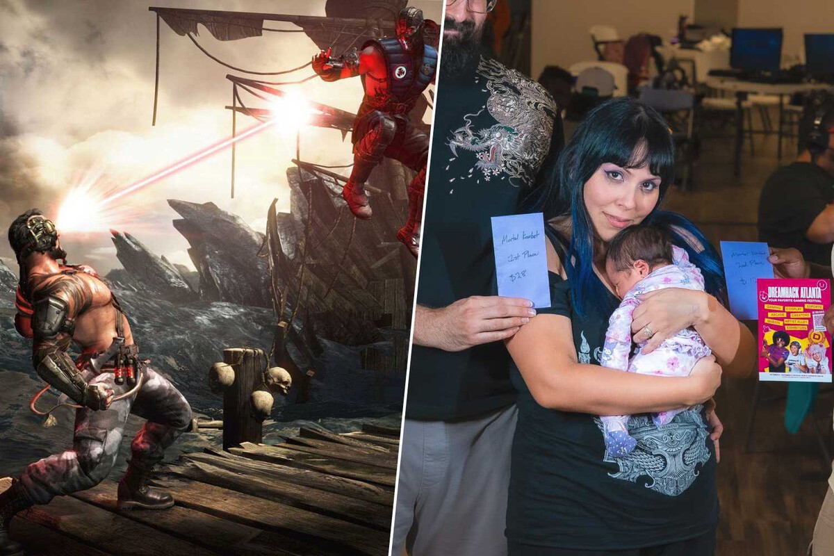 Esta mujer de Florida parece querer mantener el listón alto, porque ha hecho la hazaña/locura de la semana en el mundo gaming. Apenas cinco días después de parir, no ha querido perderse un torneo de Mortal Kombat XL. Lo ha hecho acompañada de su bebé y su marido, aunque juzgando por las imágenes parece que no se despegó de ella, hasta el punto de tenerlo en su regazo mientras sostenía el mando.