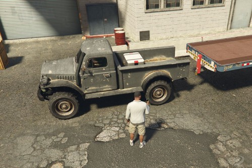 El segundo alijo que deberemos encontrar estará al suroeste del mapa. Nuevamente, la zona estará marcada por un circulo verde. Cuando llegues a la ubicación que te hemos marcado en el mapa, te encontrarás con un coche azul, al cual tendrás que subirte. El problema viene cuando Franklin se da cuenta de que este no funciona, por lo que tendrás que coger la grúa roja que hay justo en frente del coche, al lado de la entrada.