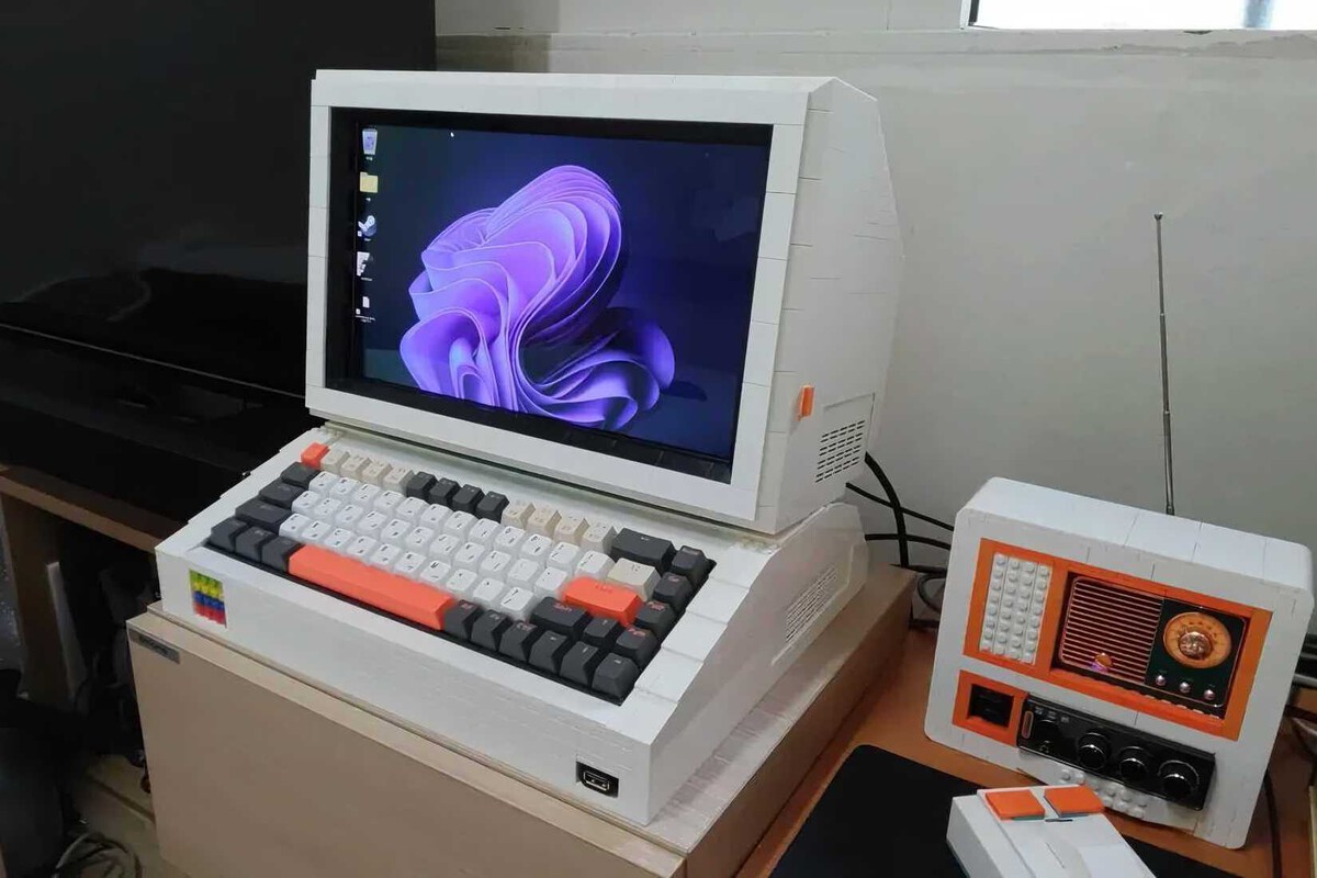 Lo que sobresale es su estética deliciosamente retro. Explicaba que lo había construido de forma modular, por lo que el monitor y el cuerpo del teclado pueden separarse o mantenerse juntos, lo que lo acerca al look de los viejos computadores de los ochenta. Es solo el look, eso sí. Internamente corre Windows 11, dos monitores OLED, 16 gigas de RAM y un procesador Ryzen 5 5600G.