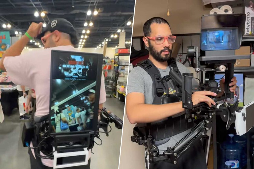Para ello su set-up hace uso de no uno sino dos PCs consolizados, que son Rog Ally y la recientemente lanzada al mercado Ally X. Estas máquinas portátiles son potentes pero mucho más ligeras que llevar un equipo completo de sobremesa a cuestas. El creador lleva desde 2023 probando diferentes configuraciones de esta idea, incluyendo una más compleja en la que llevaba encima un teleprompter.