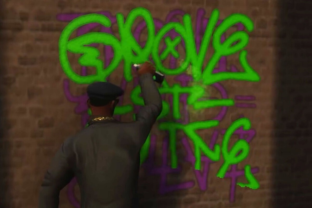 Antes de empezar a buscar los grafitis, primero tendrás que conseguir el bote de espray verde, si no será imposible taparlos. Para ello, habrá que ir a casa de CJ en Grove Street. Una vez allí, sube las escaleras y entra a la habitación de la derecha. Encontrarás es espray junto a la cama.